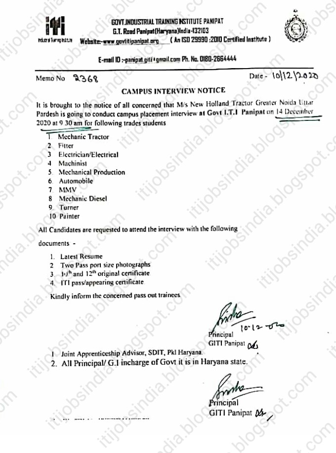 Iti Jobs Campus Placement Drive For New Holland Tractor India Pvt Ltd Greater Noida Iti And Diploma Jobs - The creation of uttar pradesh power corporation ltd.